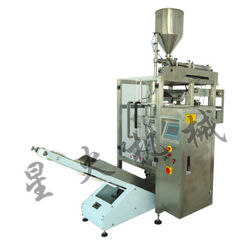 物料接触部分均采用316L不锈钢材料制成,灌装量和灌装速度均可任意调节,罐装精度高,灌装闷头采用防滴漏及升级灌装装置,全自动完成送料、计量、充填制袋、打印日期、产品输出全部生产过程。计量精度高,效率快、不碎料。省人工,损耗低,易操作和维护。