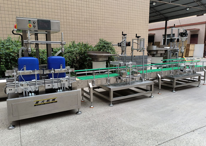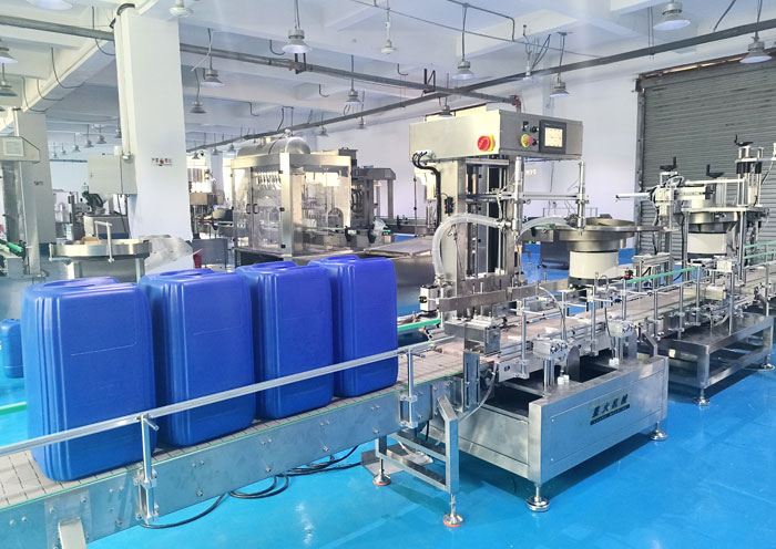25L双头化工液体称重灌装机是一种专为化工行业设计的高效自动化灌装设备,主要用于对各类化工液体(如溶剂、油类、酸碱溶液、涂料等)进行准确计量和灌装作业。25L双头化工液体称重灌装机材质采用304不锈钢,不仅防腐蚀、耐磨损,而且还易于清洁和保养。后期该设备还可搭配自动压盖机、理盖上盖旋盖机、贴标机、码垛机等设备一起使用,能够组成自动定量灌装流水线,不需要人工干预。25L双头化工液体称重灌装机的灌装误差极小,效率非常高,能够快速、准确地完成各种液体物料的灌装工作。