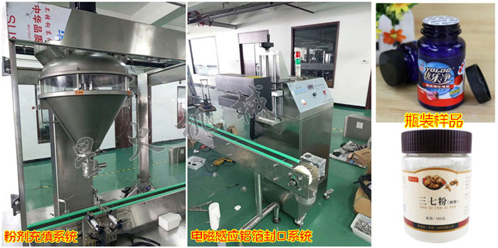 粉剂灌装生产线粉剂灌装生产线是星火公司针对瓶/罐装的粉末物料充填灌装而研制,如:豆奶粉、蛋白粉、豆浆粉、米粉、咖啡粉、苏打粉、藕粉、核桃粉、膨松剂、泡打粉、酶制剂等,灌装量是200克。瓶装粉剂灌装生产线由理瓶机、粉剂灌装机、理盖旋盖机、铝箔封口机等设备组成,能完成粉剂物料的喂罐、托罐、充填计量、上盖旋盖、铝箔封口等工作。